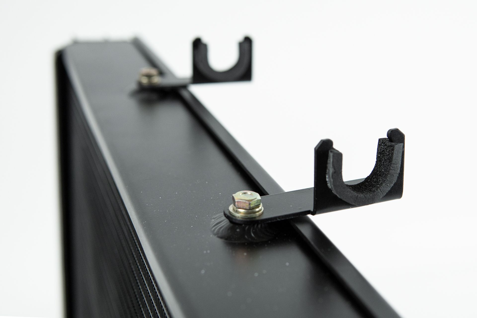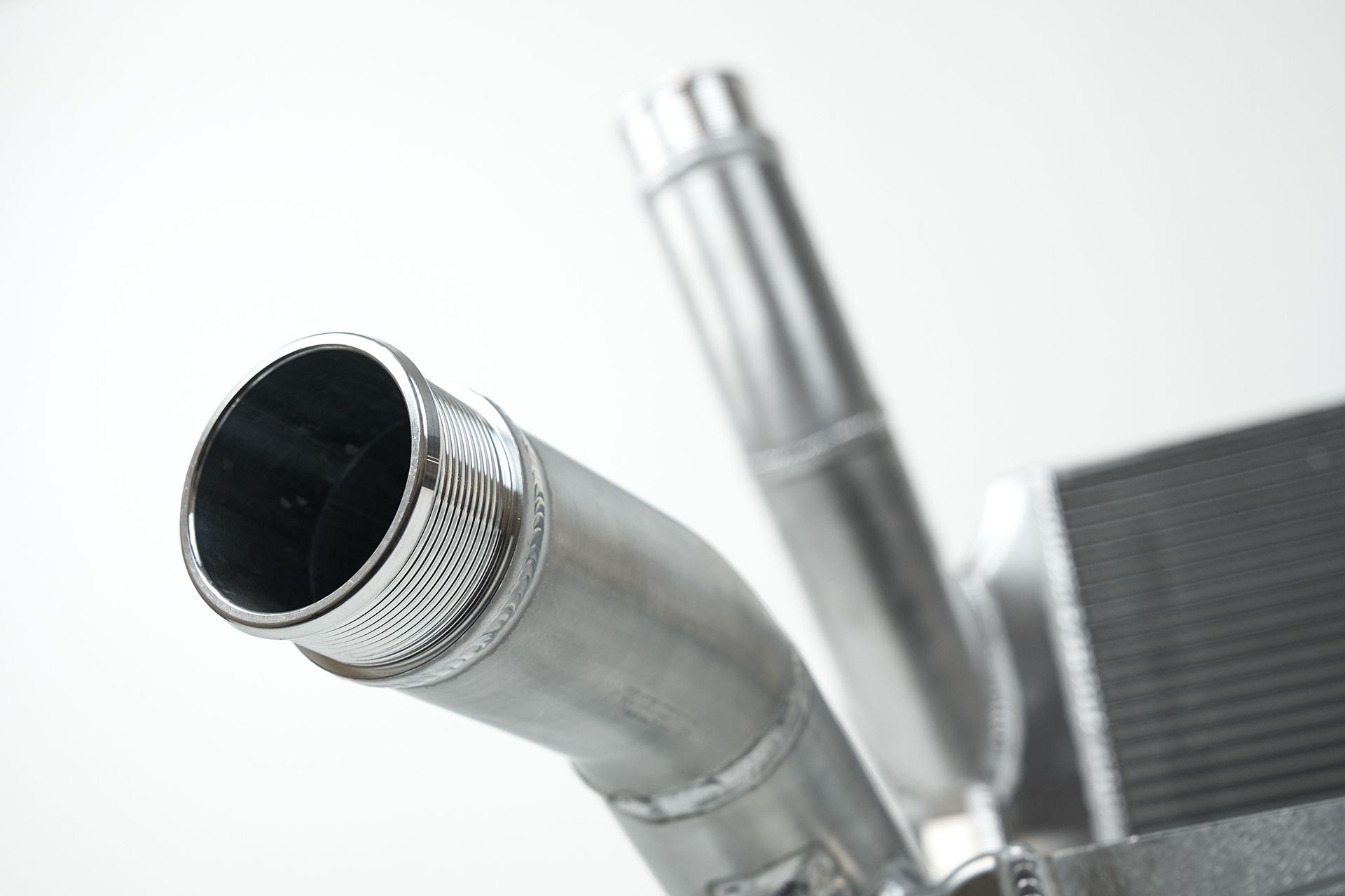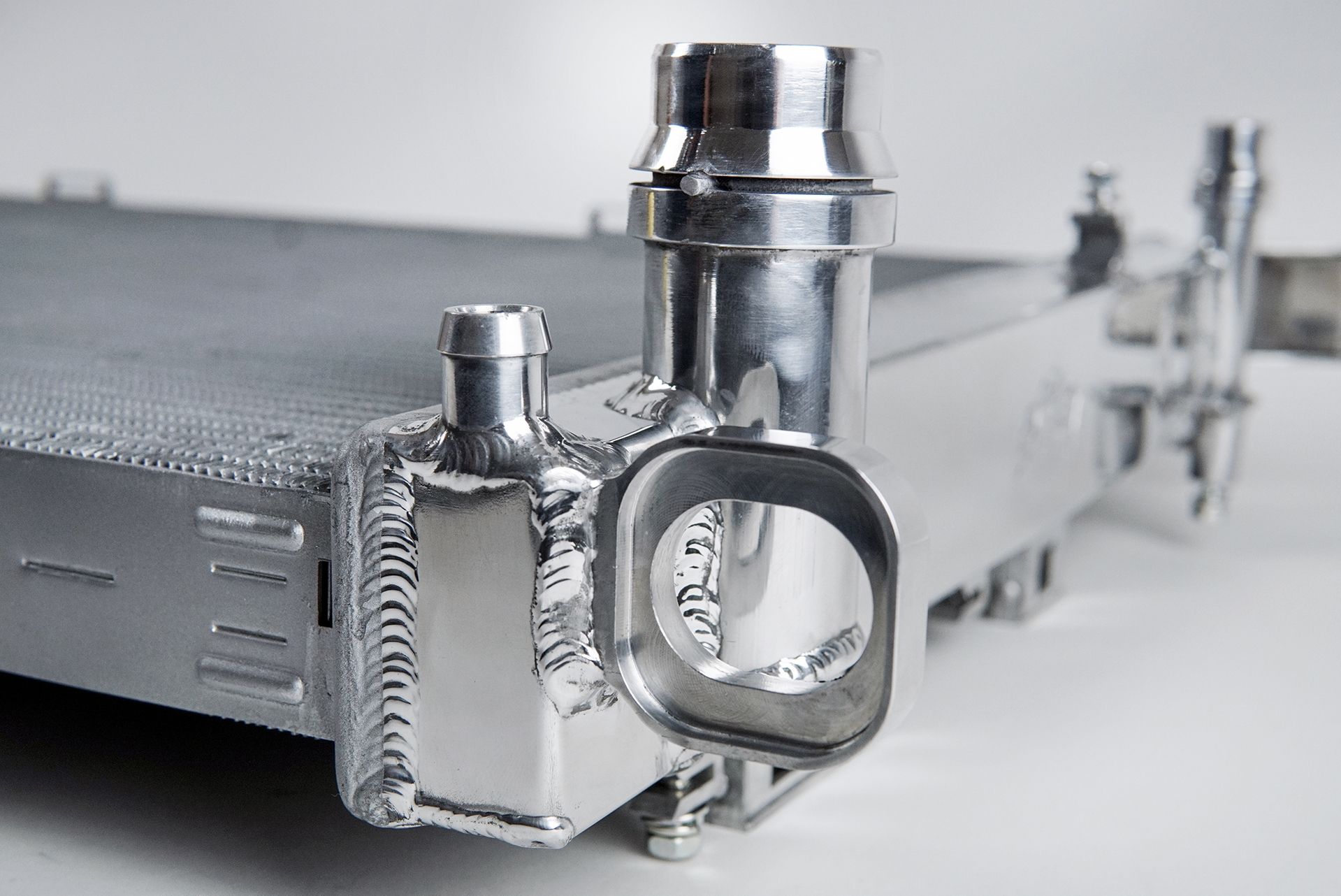 Alle montagebeugels zijn CNC-gefreesd voor een nauwkeurige pasvorm en de koelinlaat-/uitlaatverbindingen maken gebruik van hetzelfde OEM-stijl slip-on-aansluitingstype voor gebruik met alle OEM- of aftermarket-radiatorslangen.