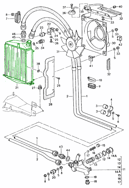 Let op : voor handgeschakelde auto's van 1983 tot 1985 is slang 94410624502 vereist om deze radiator te monteren