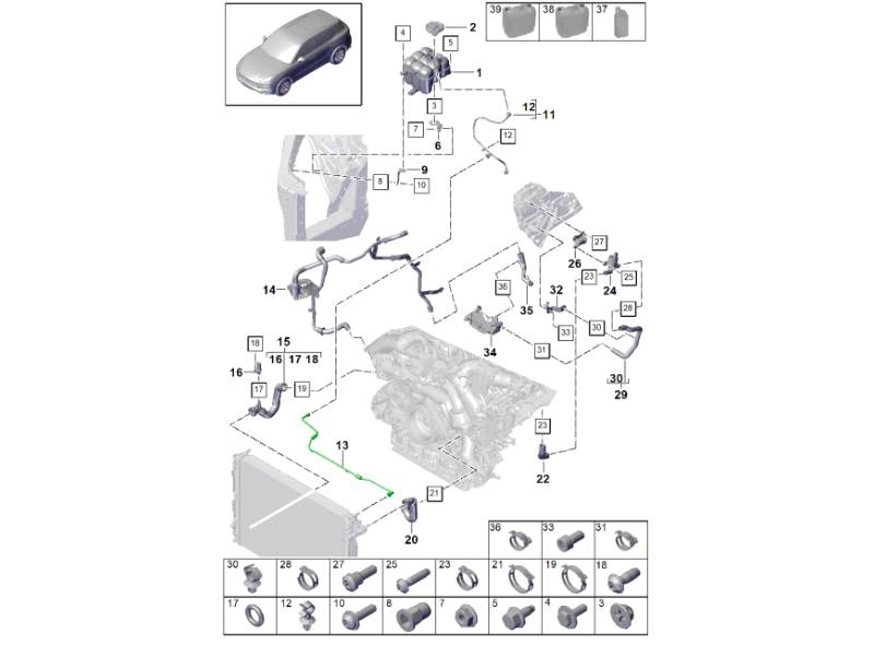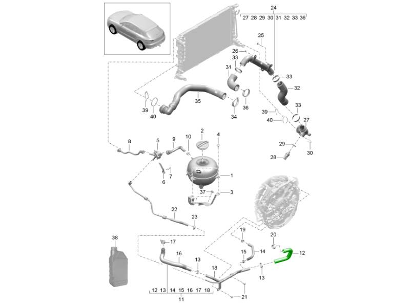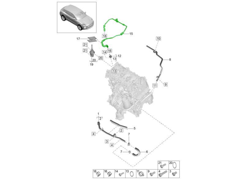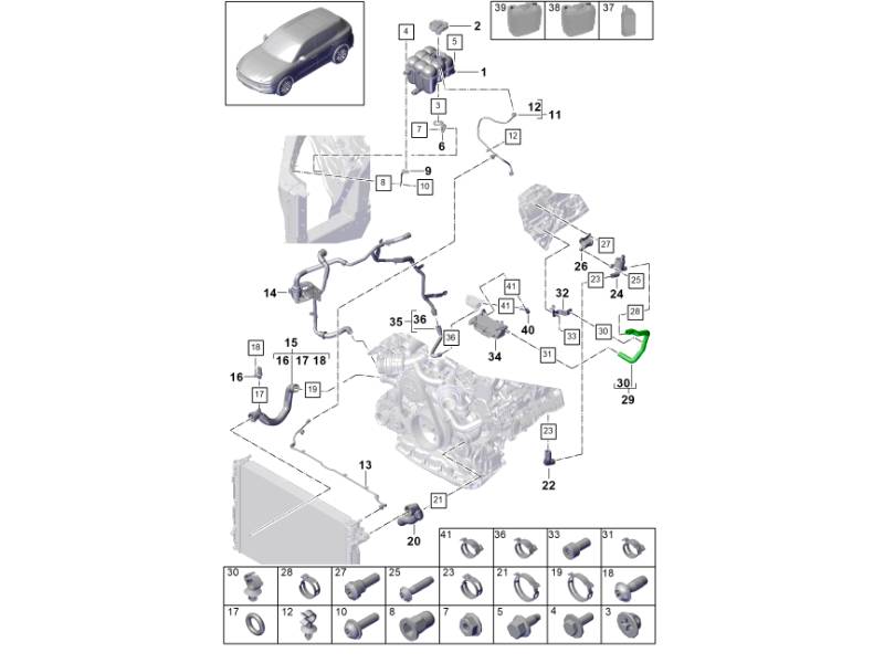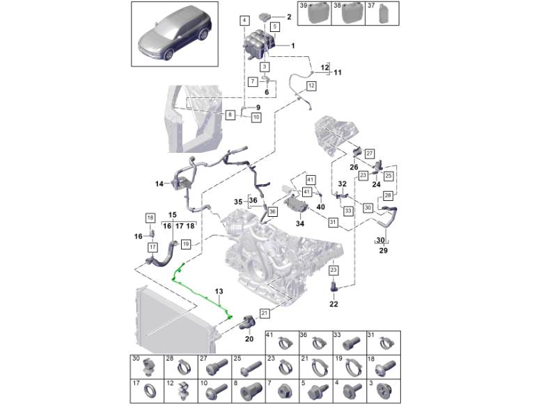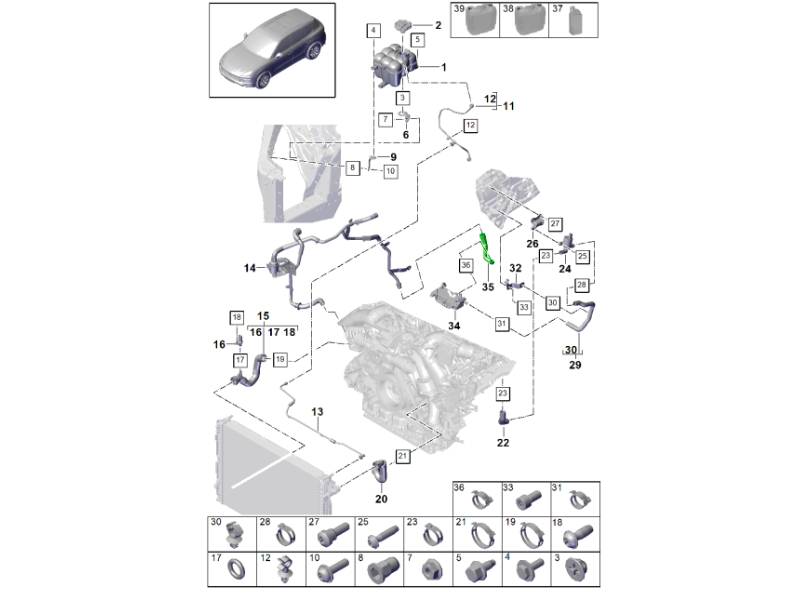 De ontluchtingsslang voor de koelvloeistof (bovenste middenstuk) is een origineel onderdeel van het koelsysteem van OE MATCH, ontworpen om ingesloten lucht en dampen uit het bovenste gedeelte van het koelvloeistofcircuit van de motor af te voeren. Deze slang, centraal geplaatst in het bovenste koelsysteem, speelt een cruciale rol in het handhaven van een goede koelvloeistofcirculatie en een evenwichtige systeemdruk.