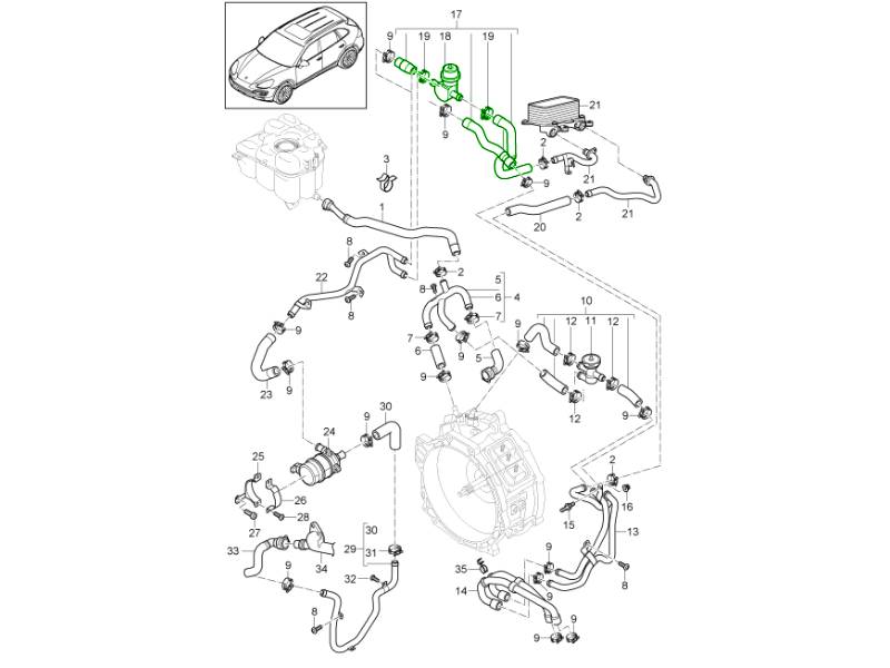 Heat management is crucial in a hybrid SUV like the Cayenne. Over time, radiators can lose efficiency as fins corrode or clog, hoses can harden and crack, and mounts can wear, leading to: