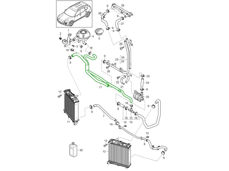 - Voert afgekoelde koelvloeistof van de radiator naar de motor.