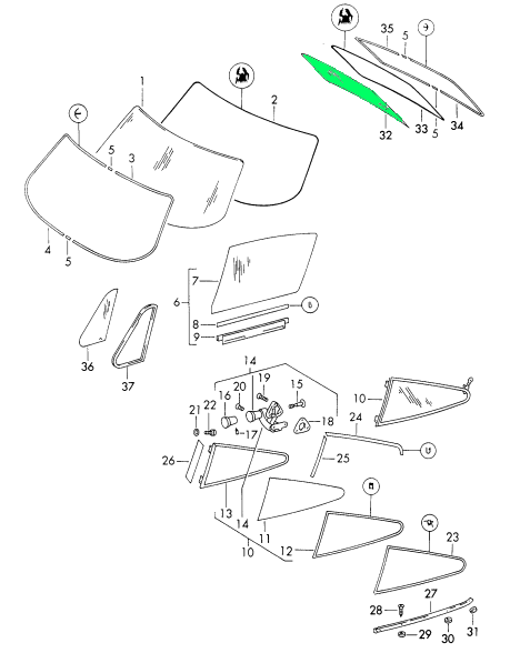 Voor- en achterruiten kunnen tegen een vergoeding worden verpakt voor nationale levering en export. Dit geldt voor de kartonnen doos met inlegvel en schuimvulling.