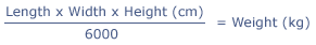 Het volumetrisch gewicht kan worden bepaald met de volgende formule: (Lengte x breedte x hoogte (cm) / 6000 = gewicht (kg))