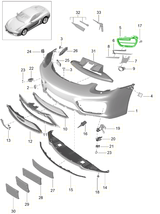 Voorbumper roosters. Porsche 957 Cayenne - 95550568