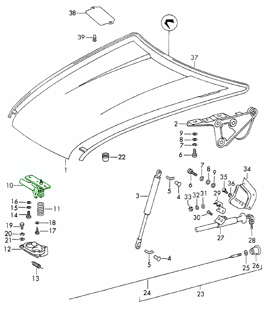 Actuator voorklep. Porsche 986 Boxster / 996 2001>> - 99651112700