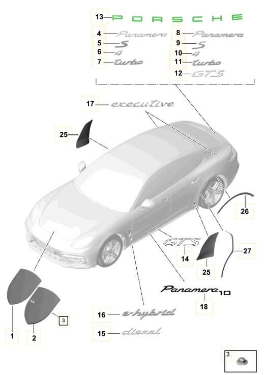 Porsche 996 GT3 RS (weg) met logo en velg in blauw (2004 en 2005)