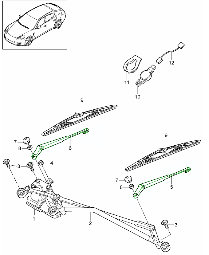 Wisserblad Voor, Set van 2 voor LHD. Porsche 991 / 981 Boxster / 981C Cayman / 718 Cayman / 718 Boxster - 99162890101