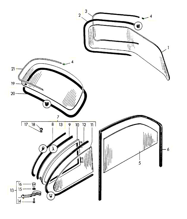 Authentieke reproductie-voorruiten voor historische Porsche-modellen zoals de 356, 911 Classic en 964 — perfect voor concoursrestauraties.