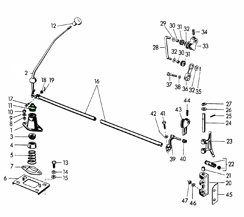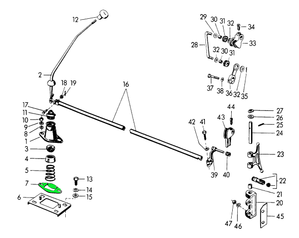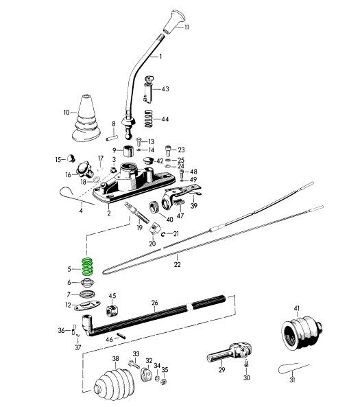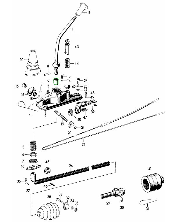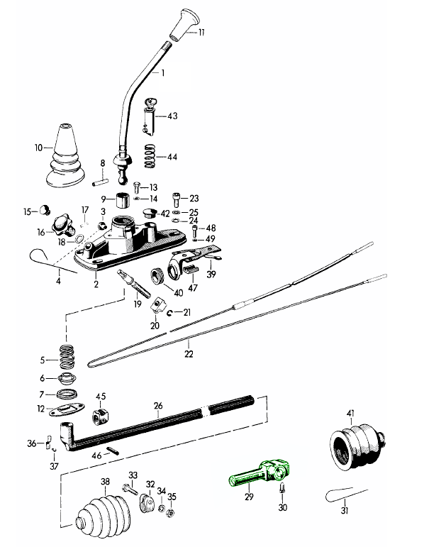- Breng de beweging van de versnellingspook over op de transmissie.