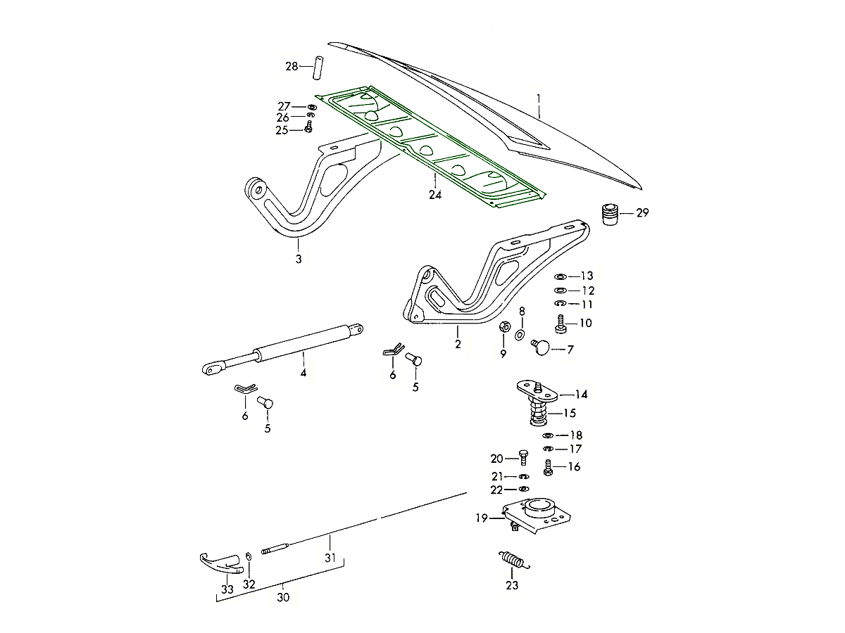 Klassieke Porsche kofferbak- en achterkleponderdelen