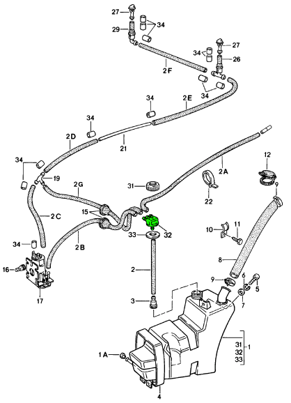 - Ruitensproeierpomp: Een elektromotor die de vloeistof onder druk zet en door de leidingen naar de sproeier duwt.