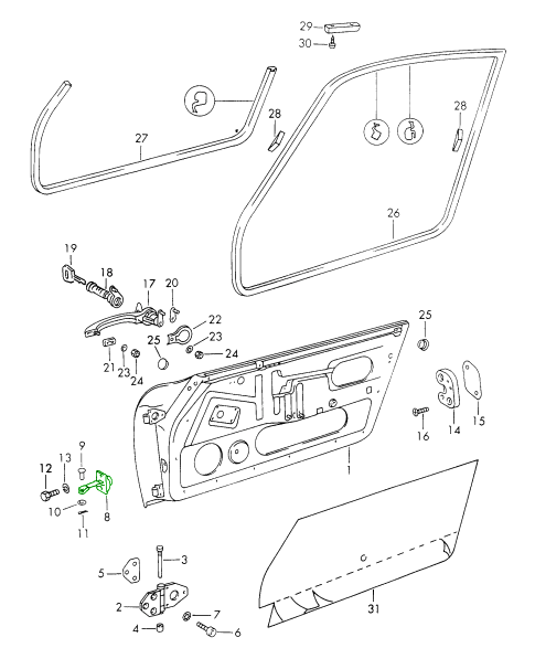 Ons assortiment is vervaardigd volgens OEM-specificaties en omvat complete deurpanelen, scharniersets, sluitmechanismen en sluitplaten voor zowel klassieke als moderne Porsche-modellen. Of u nu een klassieke 911 restaureert, scharnierslijtage op een Boxster repareert of een beschadigd deurpaneel vervangt, Design911 levert hoogwaardige hardware en fittingen die stevigheid, duurzaamheid en een perfecte uitlijning garanderen.