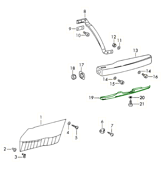 - Auto's uit de jaren 1965-'73 vereisen een retrofit van het binnendeurmechanisme uit de jaren 1974 en later, met bijbehorende Bowdenkabels, trekveren en kabelbevestigingsklemmen. Onderdeelnummers en aantallen voor alle benodigde onderdelen vindt u hieronder.