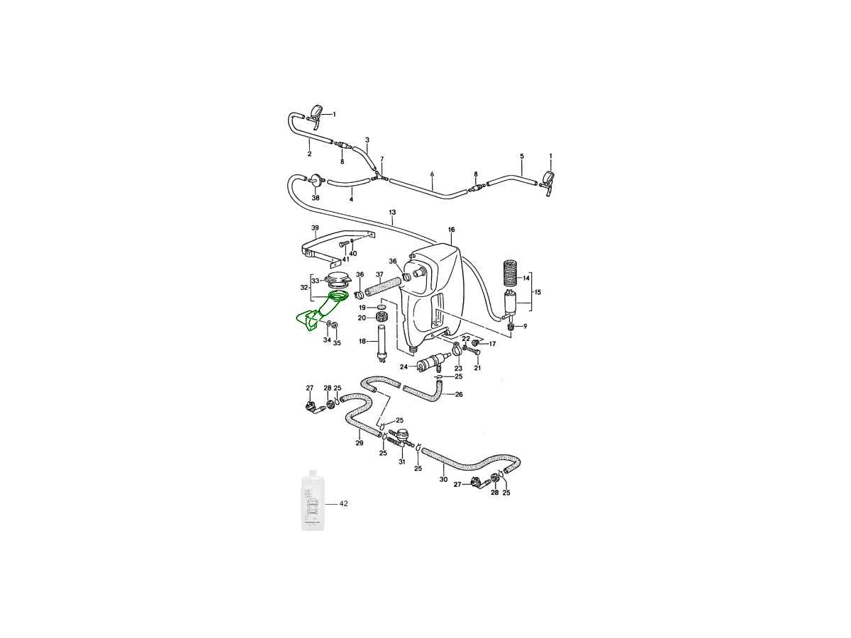 Deze onderdelen zorgen er samen voor dat het volledige vloeistofpad van het vulpunt naar het ruitensproeierreservoir wordt hersteld.