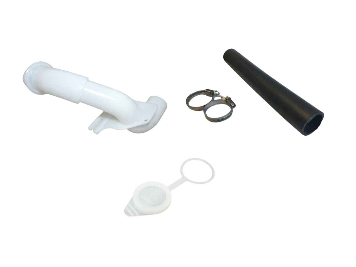 De vulhals leidt de ruitenwisservloeistof veilig naar het reservoir. De aansluitslang zorgt voor een goede overdracht zonder lekkage. De dop sluit het systeem af om vervuiling en morsen te voorkomen.