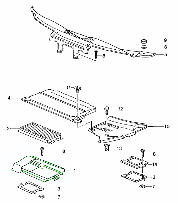 - Ze helpen voorkomen dat water, vuil of stof in de ventilatieopeningen van de motorkap/het dashboard komt door de open randen af te sluiten waar het rooster de carrosserie raakt.
