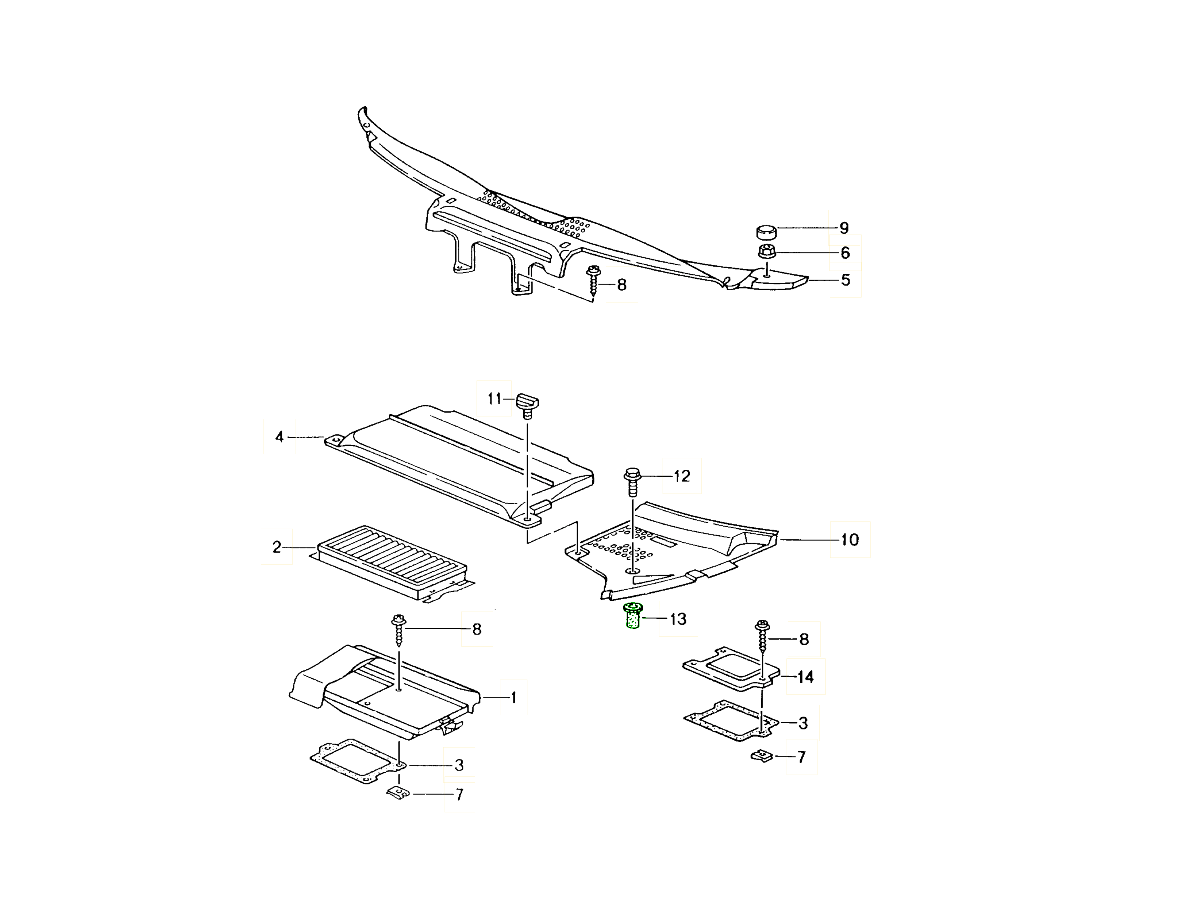 De Porsche afdekkap voor de plenumkamer is een originele OEM-afwerking, ontworpen om de plenumkamer onder de voorruit te beveiligen en af te werken. Deze kappen, uitgevoerd in zwart, sluiten de uiteinden van de plenumkamer netjes af, waardoor vuil en vocht niet kunnen binnendringen en de strakke, originele uitstraling van uw Porsche behouden blijft.