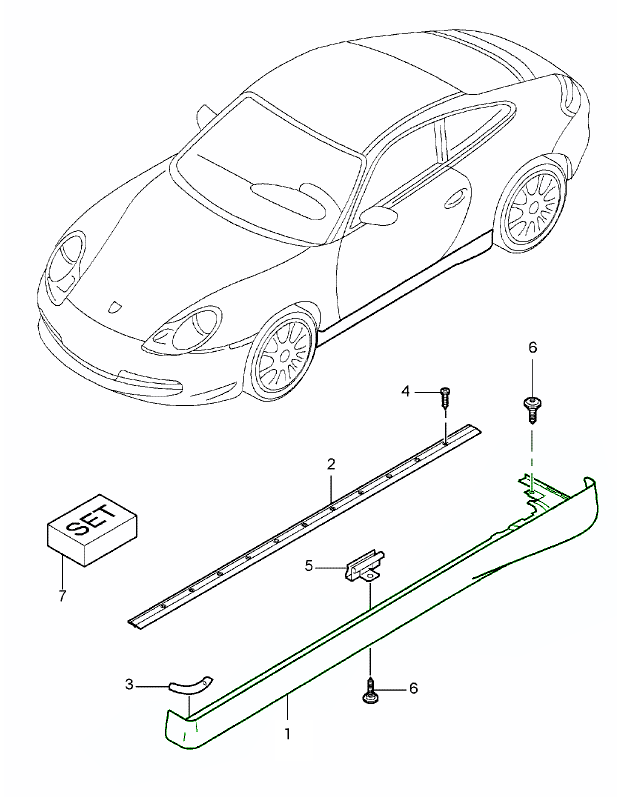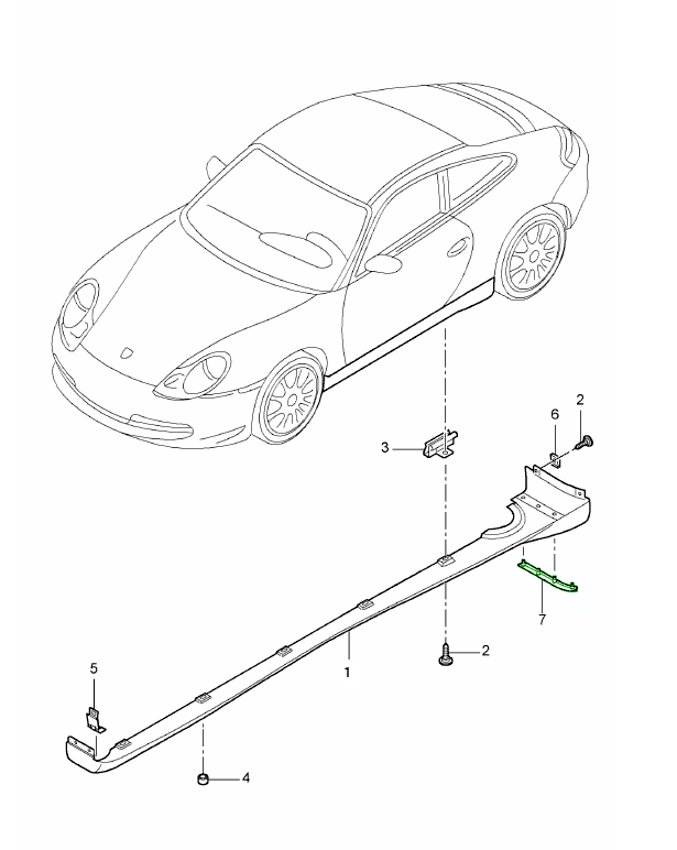 Zichtbare carrosseriecomponenten die de onderkant van het zijprofiel van de auto vormen. Beschermen het frame en verfraaien de esthetiek van het exterieur van de Porsche.