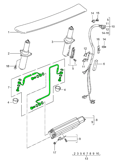 *bij het bestellen van nieuwe hydraulische cilinders moet u ook één set bestellen Code: 99651291600 Hydraulische leidingen achterspoiler.
