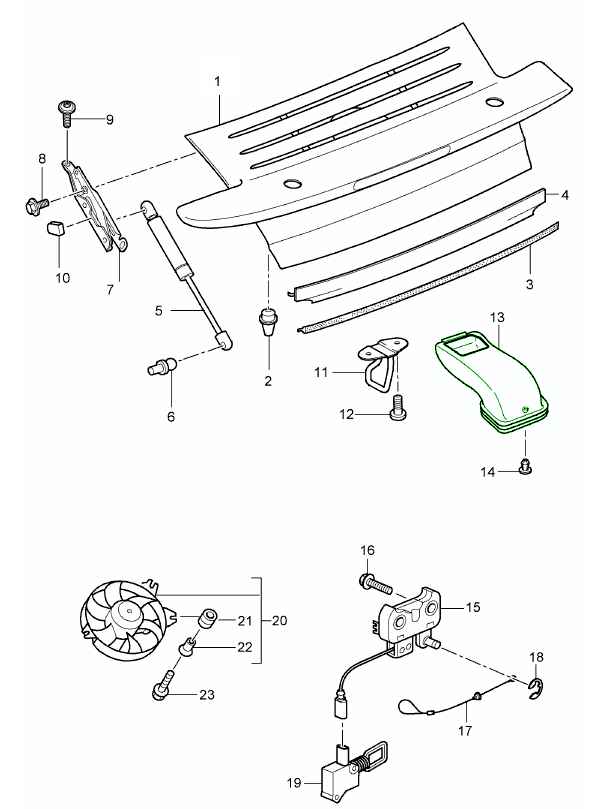 Originele en vervangende Porsche kofferbak- en achterkleppanelen, ontworpen voor perfecte pasvorm en duurzaamheid. Behoud van fabriekslijnen en structurele integriteit tijdens restauratie of reparatie.