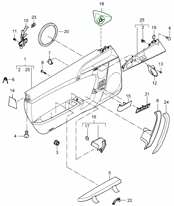- Dit is de structurele bevestiging waarmee de buitenspiegel aan de deur wordt bevestigd. Het vormt de basis/ondersteuning voor de spiegelbehuizing.