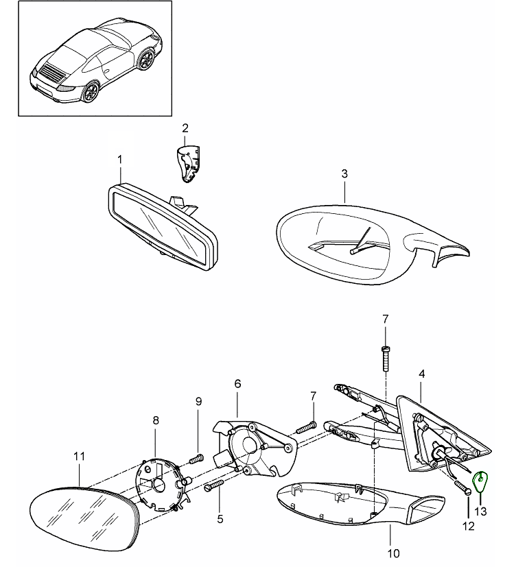 Fabrieksmatig gecorrigeerde binnenspiegels die zijn ontworpen om een helder zicht te herstellen en de authenticiteit en het comfort van het interieur van uw Porsche te behouden.