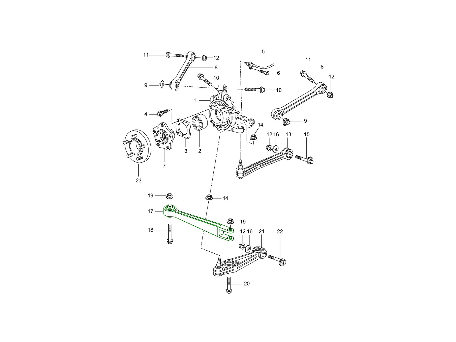 achteras, wieldrager, draagarm en wielnaaf voor 986 Boxster 1997-04 501-00