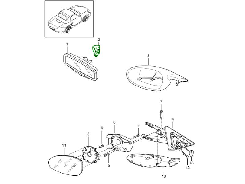 interior mirror, door mirror 986 Boxster 1997-04 809-10