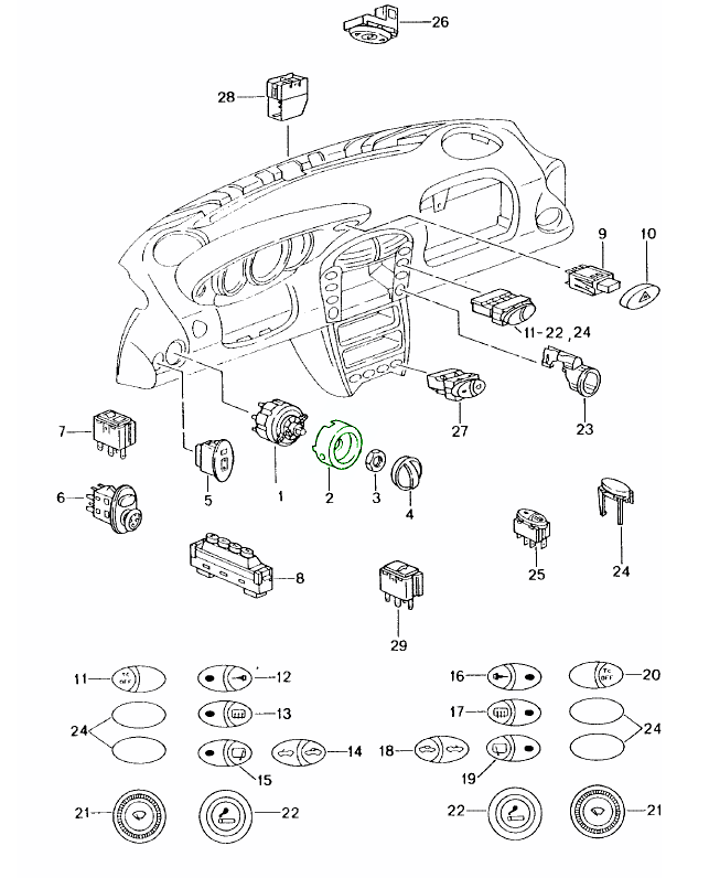 Bij Design911 bieden we een uitgebreid assortiment originele en hoogwaardige dashboardonderdelen en schakelaars voor Porsche-modellen, waaronder de 911, Boxster, Cayman, Cayenne, Macan en Panamera. Elk onderdeel is ontworpen voor een perfecte pasvorm, een eersteklas gevoel en betrouwbare elektrische prestaties - waardoor uw interieur weer in de originele staat en functionaliteit is.