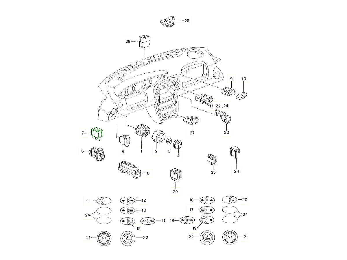 Dashboard- / consoleonderdelen en schakelaars
