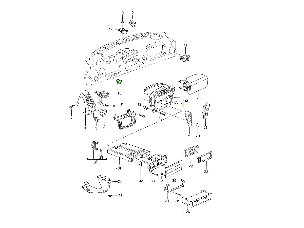 Het dashboard en de middenconsole van uw Porsche zijn meer dan alleen interieurafwerking – ze vormen het commandocentrum voor uw rijervaring. De onderdelen en schakelaars van de dashboardconsole bedienen essentiële functies zoals verlichting, klimaatregeling, audio, alarmsystemen en comfortfuncties. Deze componenten combineren luxe design met technische precisie, waardoor elke functie naadloos werkt en de kenmerkende Porsche-esthetiek behouden blijft.