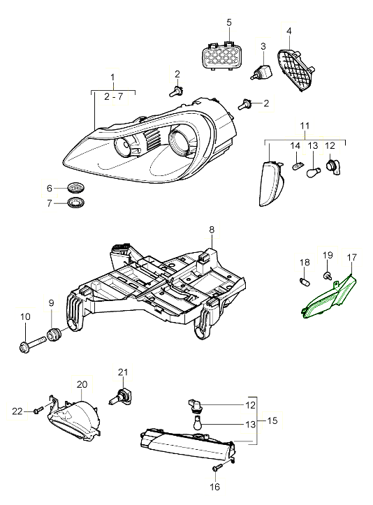 De Capless-lampen zijn gemonteerd op Porsche 996-modellen tot >> 08/2001 (auto's zonder Litronic-lampen M601)