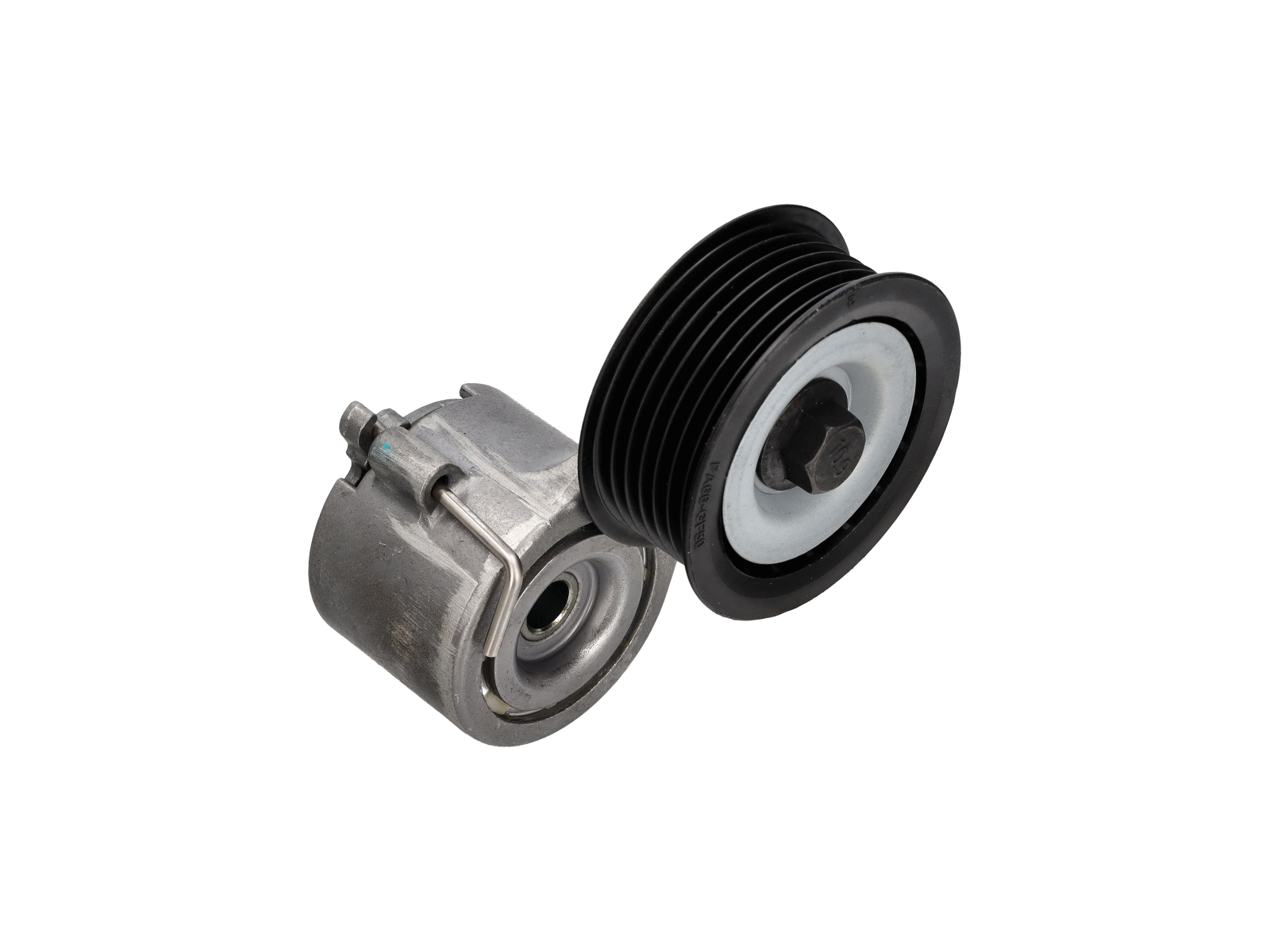 Spanrol voor de accessoire-aandrijfriem - geïnstalleerd in het accessoire-aandrijfsysteem aan de voorzijde van de motor om de riemspanning en -uitlijning te regelen.