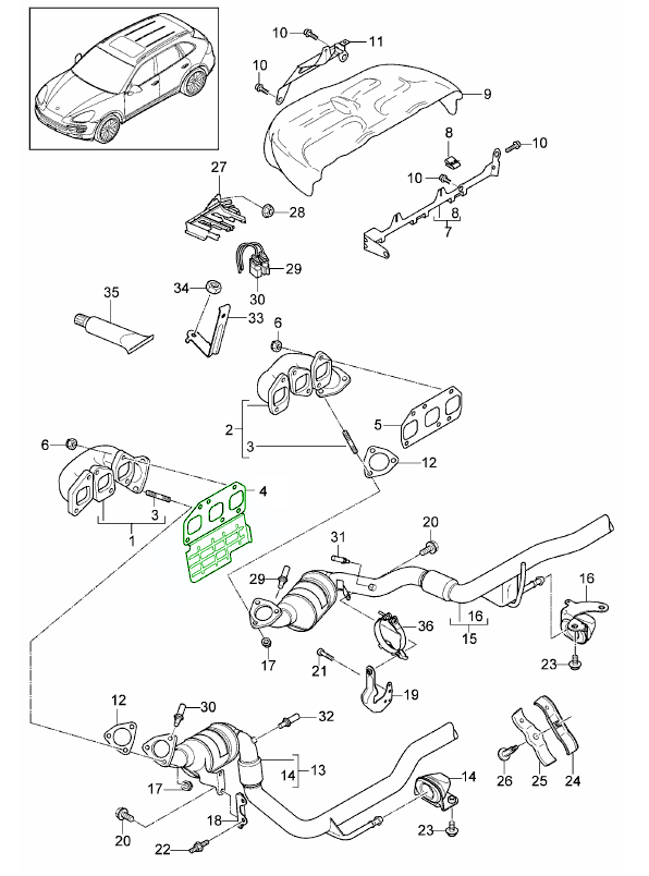 - Precisie-ontworpen uitlaatpakkingen voor alle Porsche-modellen.