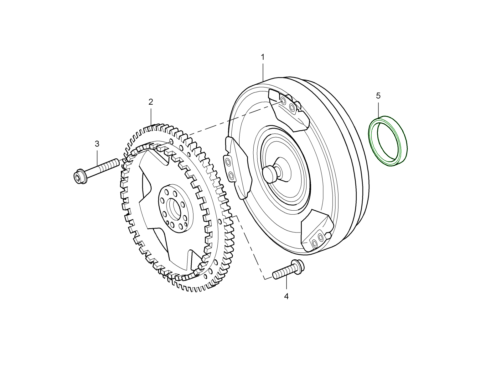 • Dicht de interface tussen de koppelomvormer en de transmissiebehuizing af.