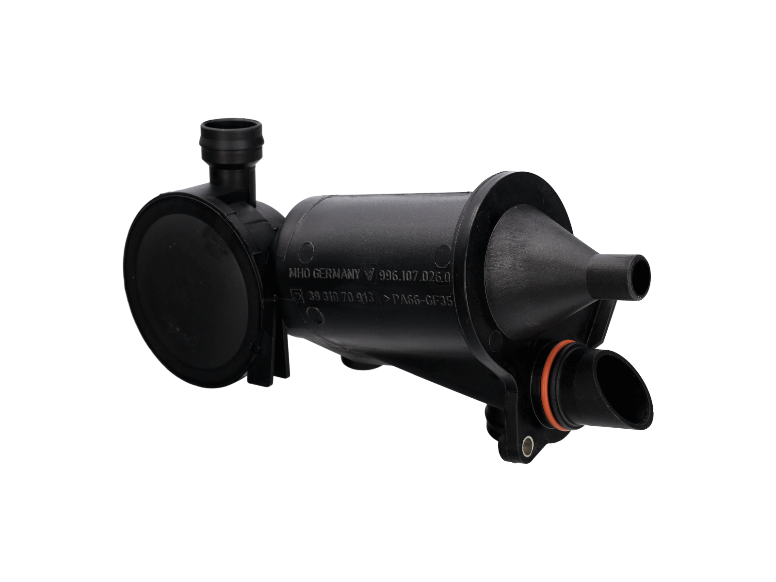 De originele Porsche Air-Oil Separator is de door de fabriek gespecificeerde unit die verantwoordelijk is voor het afscheiden van olienevel uit de cartergassen van moderne Porsche flat-6 motoren. Als onderdeel van het PCV-systeem zorgt het voor schone ventilatie, een stabiele carterdruk en een goede olieregeling – cruciaal voor de bescherming van het inlaatsysteem en het behoud van optimale motorprestaties.