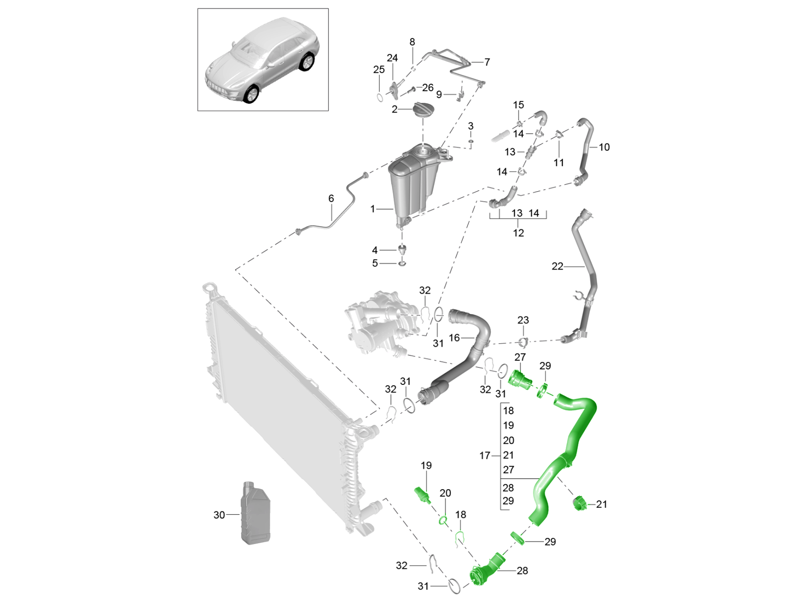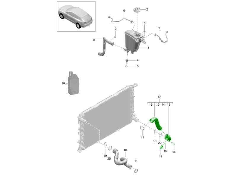 Koelvloeistofkoelsysteem / koelvloeistofexpansietank (model: CDUD,CTBA, CTBB,CTBC) 95B.1 Macan 3.0L Diesel 2014-18 105-050