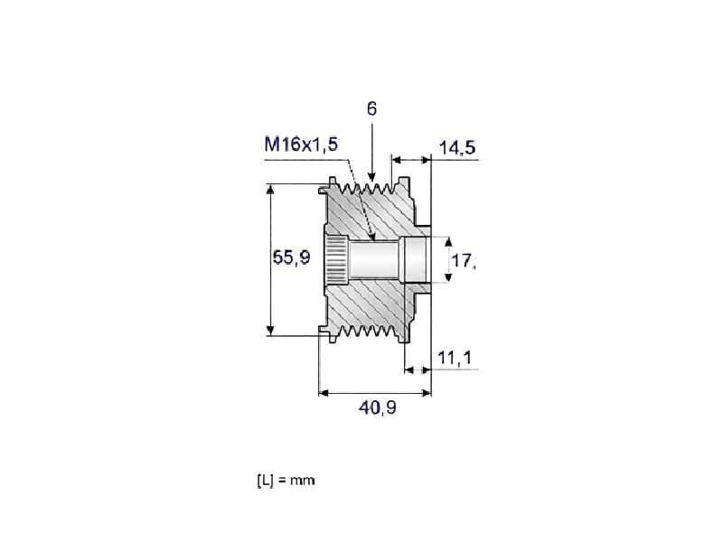 - Verkeerde uitlijning van de riem of te hoge spanning versnelt slijtage van de poelie.