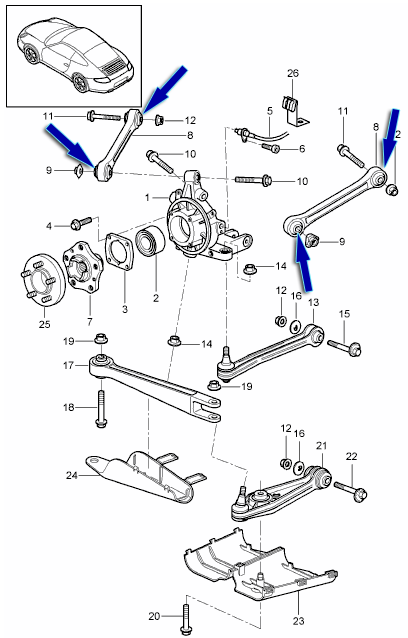 Porsche 997.1 C2 CABRIO / COUPE 2005-08 Auto's met standaard chassis (I029) en handgeschakelde zesversnellingsbak (I480)