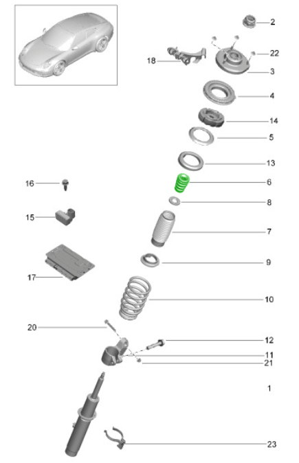 De voorste schokdempers zijn cruciaal voor het ophangingssysteem van uw Porsche en zorgen voor een soepele rijervaring, consistent wielcontact en een stabiele wegligging. Samen met schroefveren, dempers en bevestigingscomponenten absorberen deze onderdelen de impact van de weg en verminderen ze trillingen, waardoor uw Porsche onder alle rijomstandigheden kalm en responsief blijft. Een goed onderhouden voorste schokdemper levert de precieze stuurfeedback, grip en het comfort die u van een high-performance auto mag verwachten.