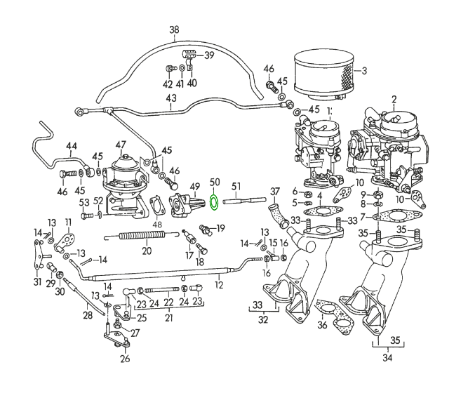 Porsche 356 A van de bouwjaren 1955 tot 1959 met Solex carburateur en Pallas-Zenith carburateur