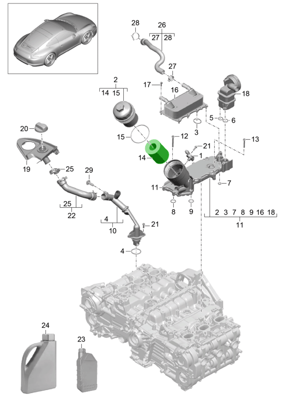 Oliefilters zijn een essentieel onderdeel van het smeersysteem van uw Porsche. Ze zorgen ervoor dat er alleen schone, gefilterde olie door de motor circuleert.