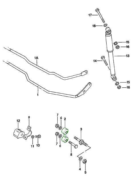 De achterste draagarmen en bussen fungeren als verbindingspunten waardoor de stabilisatorstang uw Porsche in bochten kan stabiliseren.