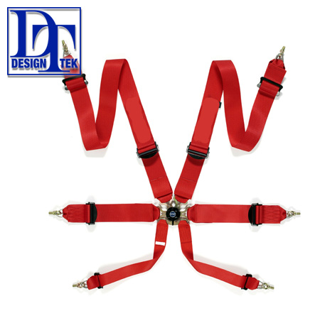 DesignTek 6-punts is een professioneel sedan race-/rallyharnas met 7,5 cm brede schouder- en heupriemen met clip-on fittingen. Met ultralichte aluminium verstellers op de schouderbanden met een optie om dezelfde verstellers op de heupgordels te hebben.