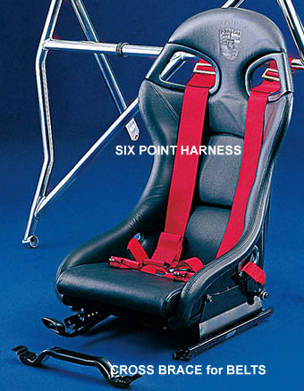 Gebruikt in combinatie met de optionele rolbeugel en kuipstoel, biedt deze zespunts racegordel maximale bescherming tijdens wedstrijdgebruik. Moet worden vervangen door standaard driepuntsgordel wanneer het voertuig op de openbare weg wordt gebruikt.