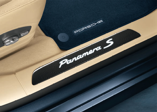 Fitted front and rear, the door sill guards are available in either carbon, a material reminiscent of the race track, or brushed aluminium, a durable material with a classy look.