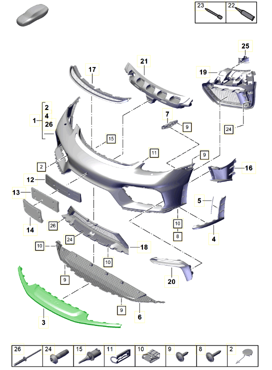 Front spoiler lip to be mounted on 965 Turbo S Le Mans GT front bumper (factory state 1993).