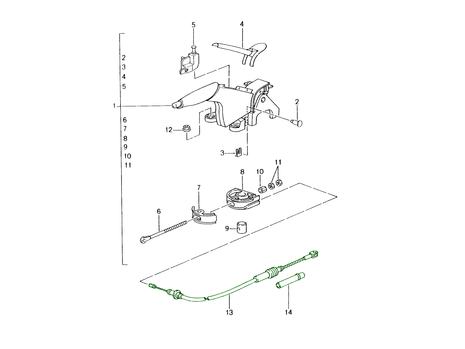 This kit contains the essential parking brake (handbrake) mechanical components needed to service the rear parking brake system of Porsche 996 models. The set includes: