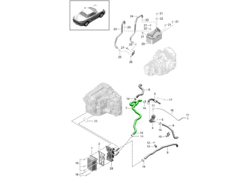 - Feeds coolant into the PDK gearbox cooling circuit