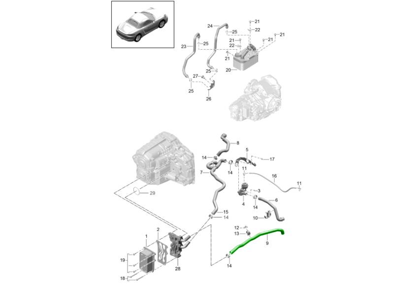 • The PDK gearbox coolant return hose is essential for maintaining proper coolant circulation through the transmission cooling system. If this hose becomes cracked, weakened, or begins to leak, coolant flow may be reduced and transmission temperatures can rise quickly.